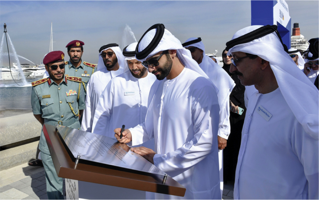 افتتح سمو الشيخ منصور بن محمد بن راشد آل مكتوم، أمس، مشروع «مراسي ميناء راشد»، الوجهة العالمية الجديدة للسياحة البحرية والترفيهية، والذي يتسع لأكثر من 5000 مرسى، تقام على ثلاث مراحل، على مساحة 13 كيلومتراً مربعاً، ويضم العديد من المرافق السياحية والبحرية والترويحية، والمدينة الترفيهية المتكاملة «مارينا كيوب».