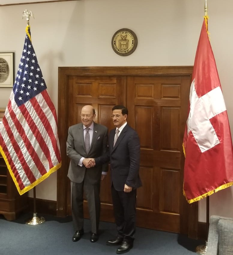 من جانبه شدد معالي ويلبور روس وزير التجارة الأمريكي على أهمية العلاقات الثنائية التي تجمع البلدين والحرص على تعزيز أطر الشراكة القائمة بما يحقق المنفعة المتبادلة ويخدم الأهداف التنموية للبلدين.