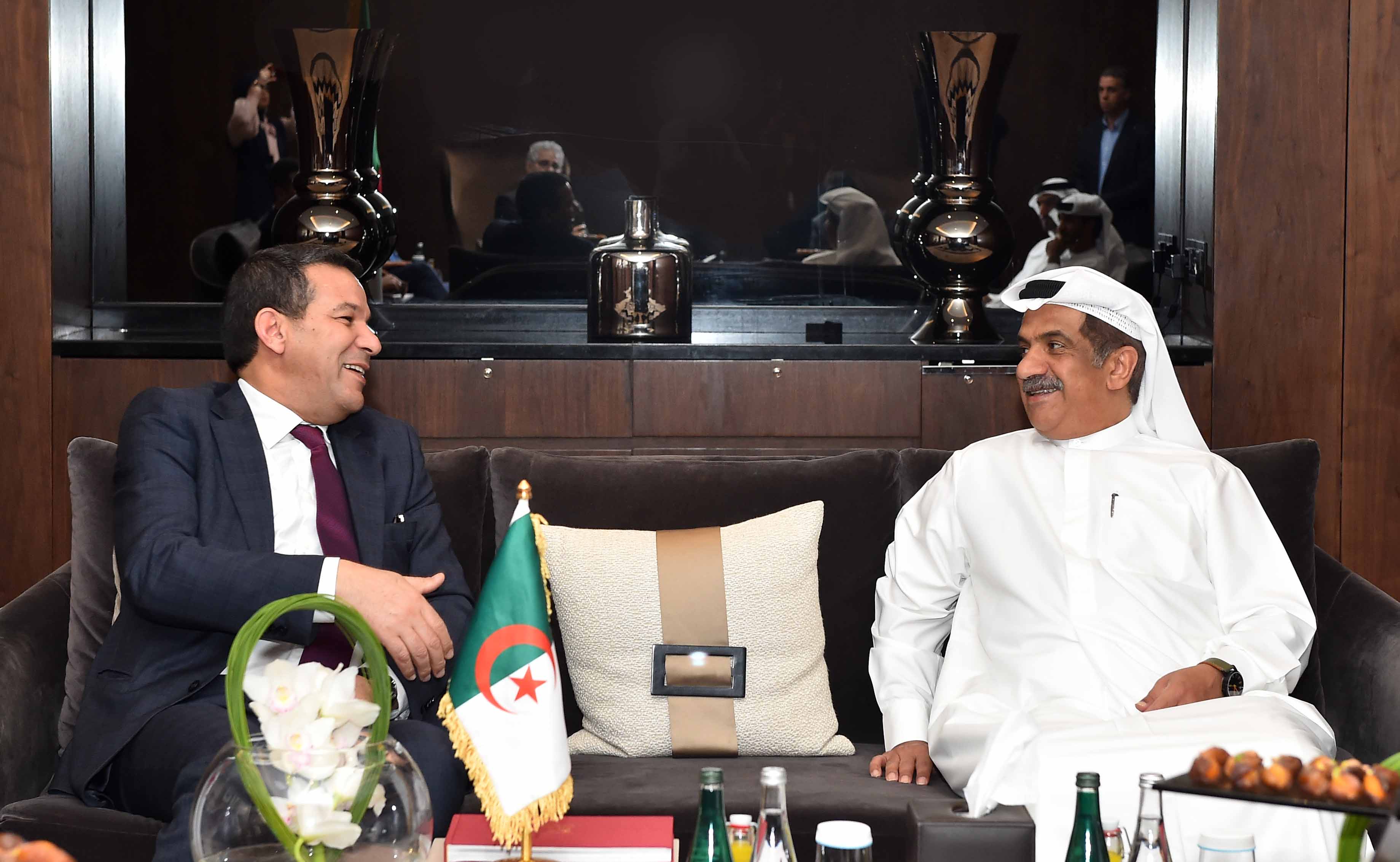 اجتمع معالي سعيد جلاب وزير التجارة في الجمهورية الجزائرية الديمقراطية الشعبية والوفد المرافق له، مع سعادة جمال سيف الجروان الأمين العام لمجلس الإمارات للمستثمرين بالخارج.