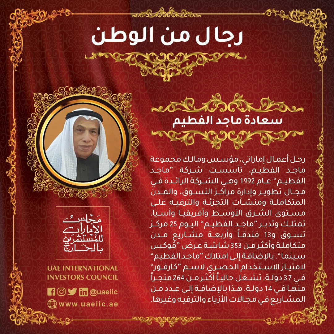 رجل أعمال إماراتي، مؤسس ومالك مجموعة ماجد الفطيم، تأسست شركة "ماجد الفطيم" عام 1992 وهي الشركة الرائدة في مجال تطوير وإدارة مراكز التسوق، والمدن المتكاملة ومنشآت التجزئة والترفيه على مستوى الشرق الأوسط وأفريقيا وآسيا. تمتلك وتدير "ماجد الفطيم" اليوم 25 مركز تسوق و13 فندقاً وأربعة مشاريع مدن متكاملة وأكثر من 353 شاشة عرض "ڤوكس سينما". بالإضافة إلى امتلاك "ماجد الفطيم" لامتياز الاستخدام الحصري لاسم "كارفور" في 37 دولة. تشغل حالياً أكثر من 264 متجراً منها في 14 دولة. هذا بالإضافة إلى عدد من المشاريع في مجالات الأزياء والترفيه وغيرها.