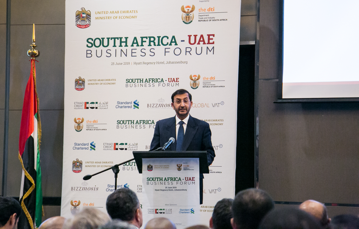 وخلال المنتدى، تطرق سعادة محش سعيد الهاملي سفير الدولة لدى جمهورية جنوب افريقيا سفير غير مقيم لدى جمهورية بوتسوانا إلى العلاقات الاقتصادية المتينة والمتنامية بين الإمارات العربية المتحدة وجمهورية جنوب إفريقيا. كما تحدث عن اكسبو 2020، والتقدم المحرز في الإعداد لهذا الحدث الضخم مشجعاً جمهورية جنوب إفريقيا على المشاركة في المعرض العام المقبل بفاعلية كما تم توقيع مذكرة تفاهم بين شركة الاتحاد للتأمين الانتمائي ومؤسسة تامين ائتمان الصادرات مما سيعزز التزام كلا القطاعين العام والخاص في الدولة وجنوب افريقيا بالتعاون الوثيق في هذا الصدد.