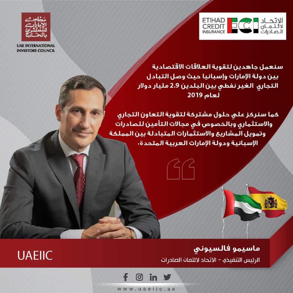 سنعمل جاهدين لتقوية العلاقات الاقتصادية بين دولة الإمارات وإسبانيا حيث وصل التبادل التجاري الغير نفطي بين البلدين 2.9 مليار دولار لعام 2019.