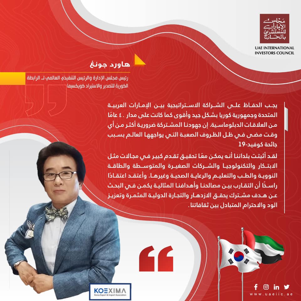 يجب الحفاظ على الشراكة الاستراتيجية بين الإمارات العربية المتحدة وجمهورية كوريا بشكل جيد وأقوى كما كانت على مدار 40 عامًا من العلاقات الدبلوماسية. إن جهودنا المشتركة ضرورية أكثر من أي وقت مضى في ظل الظروف الصعبة التي يواجهها العالم بسبب جائحة كوفيد-19