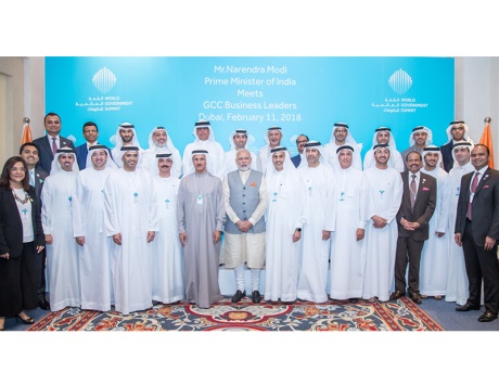 حضر ناريندرا مودي، رئيس الوزراء الهندي، اجتماعاً مع كبار رجال الأعمال من دول مجلس التعاون الخليجي في دبي، أشار خلاله إلى الرؤية الجديدة للهند مشيراً إلى سهولة ممارسة الأعمال التجارية في الهند مع قادة الأعمال.
