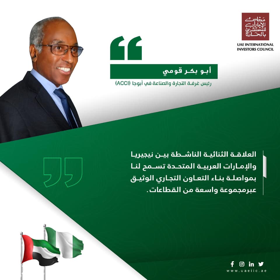العلاقة الثنائية الناشطة بين نيجيريا والإمارات العربية المتحدة تسمح لنا بمواصلة بناء التعاون التجاري الوثيق عبرمجموعة واسعة من القطاعات.